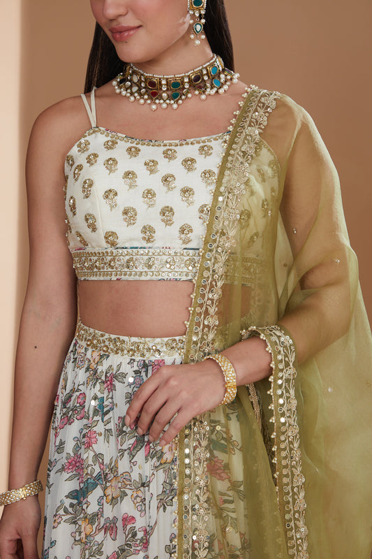 Ivory Georgette Tiered Skirt And Draped Dupatta Set