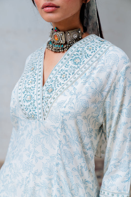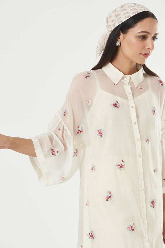 Ivory Organza Floral Embroidered Tunic Shirt Set