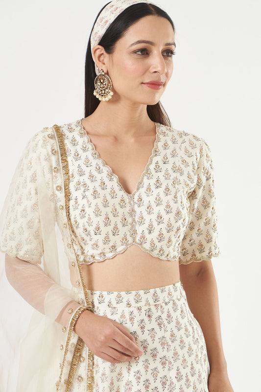 Ivory Chanderi Embroidered Angarakha & Skirt Set