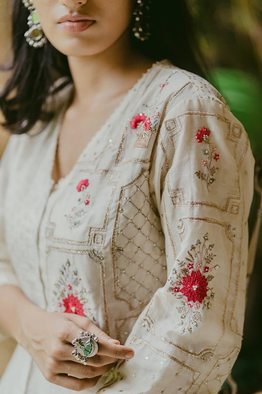 Ivory Chanderi Gulaab Embroidered Anarkali Set