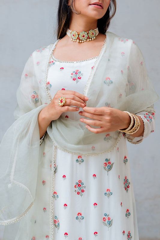 Ivory Chiffon Embroidered Flared Anarkali Set