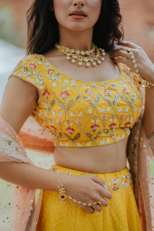 Mustard Banarasi Embroidered Lehenga Set