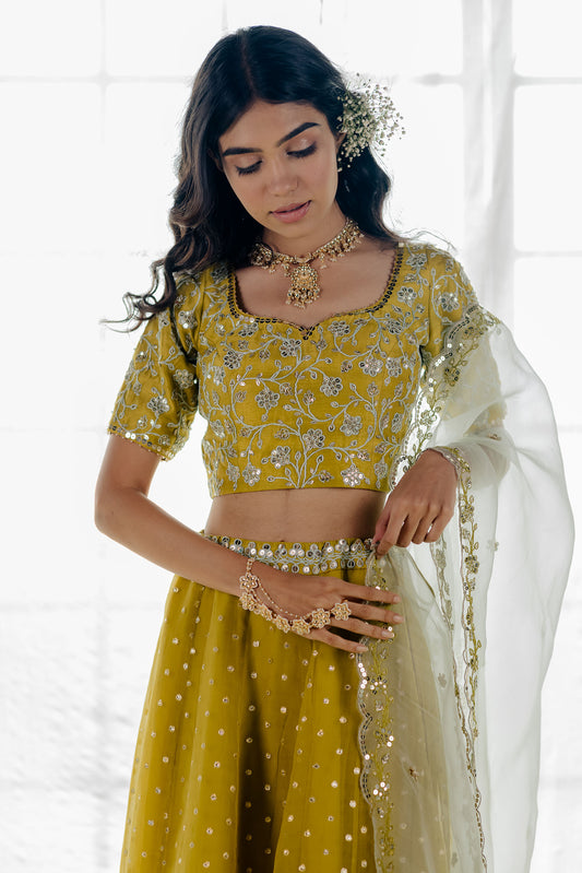 Moss Green Embroidered Organza Lehenga Set