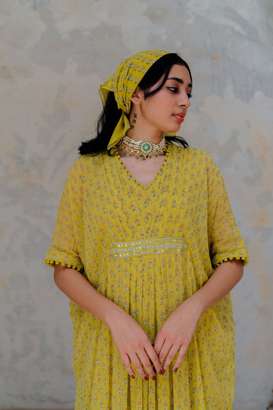 Mustard Cotton Crinkled Anarkali Set