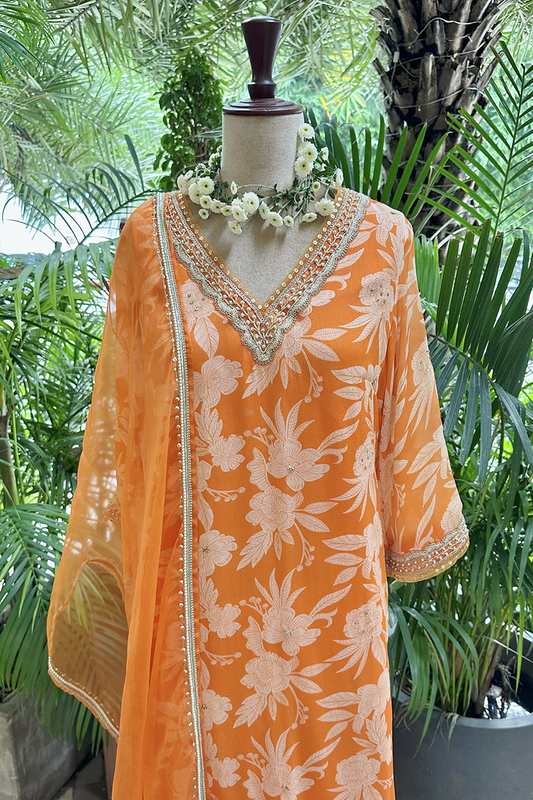 Orange Chiffon Straight Kurta Set