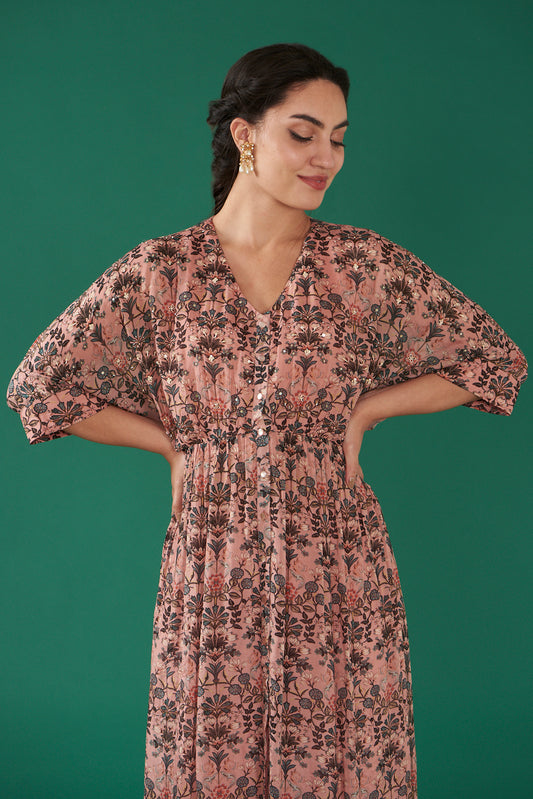 Rose Pink Chiffon Floral Printed Kaftan Set