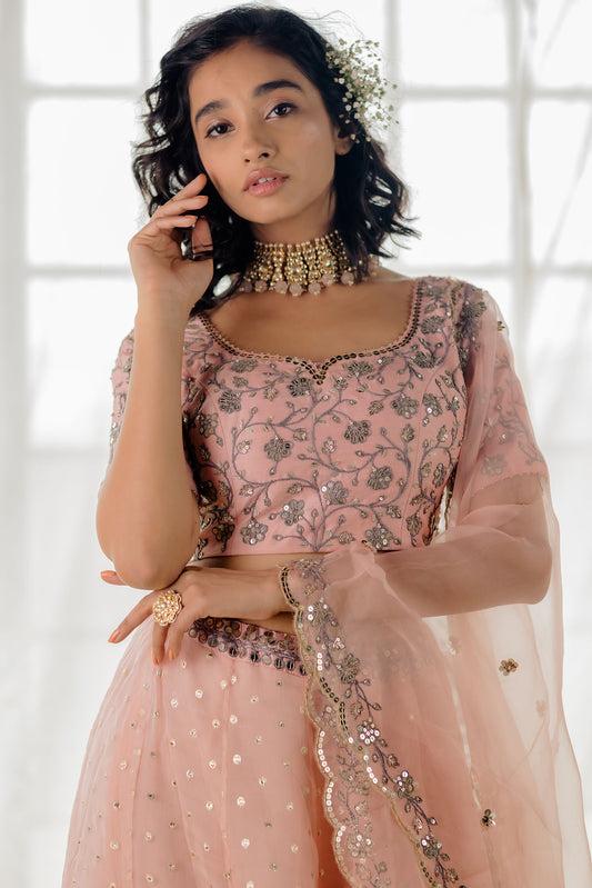 Powder Pink Embroidered Organza Lehenga Set