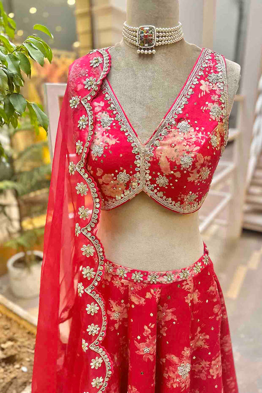 Red Banarasi Concept Embroidered Lehenga Set