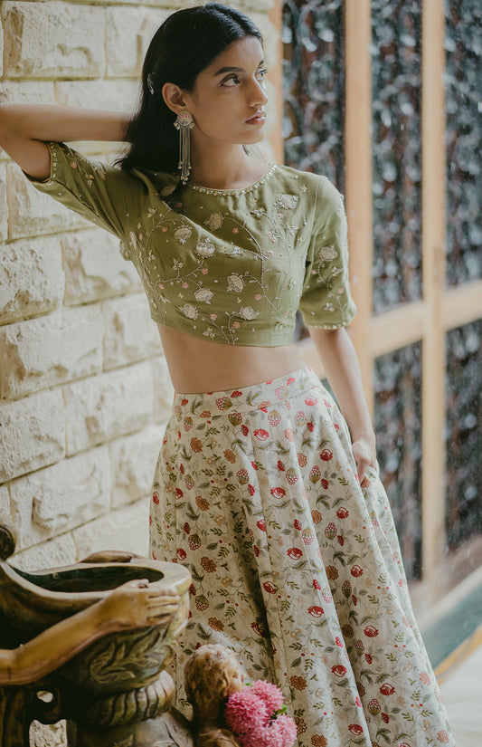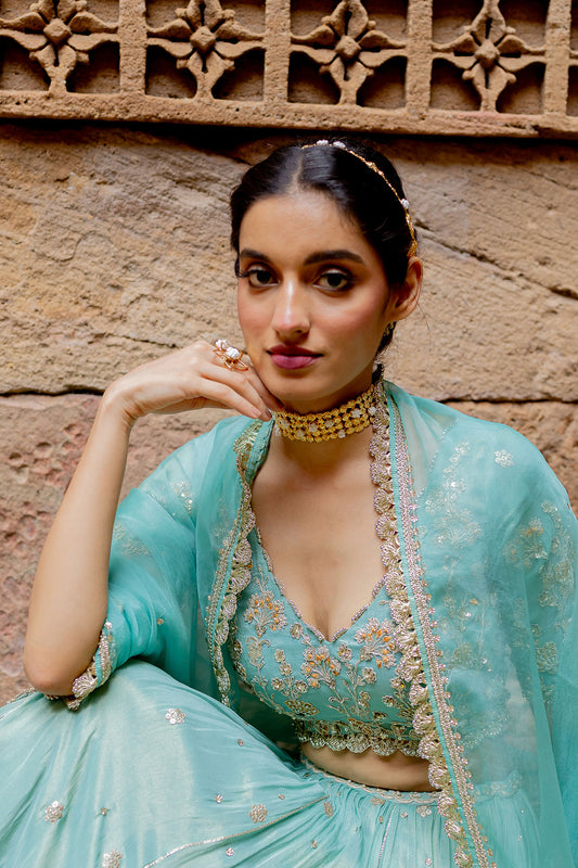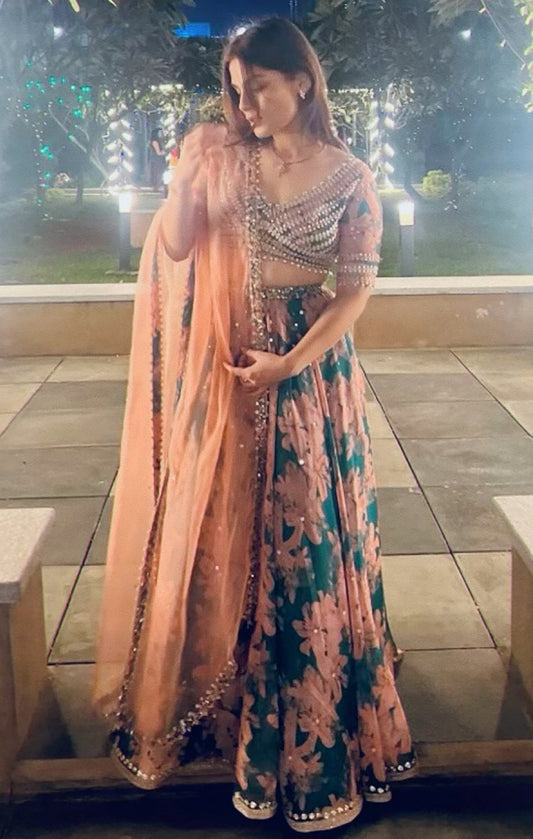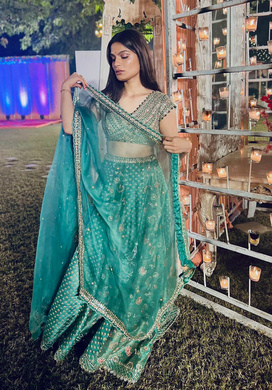 Srishti Dixit In Green Silk Embroidered Lehenga Set