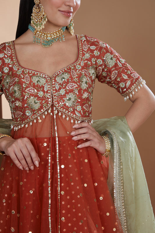 Sheena Sherwani In Mustard Floral Lehenga Set