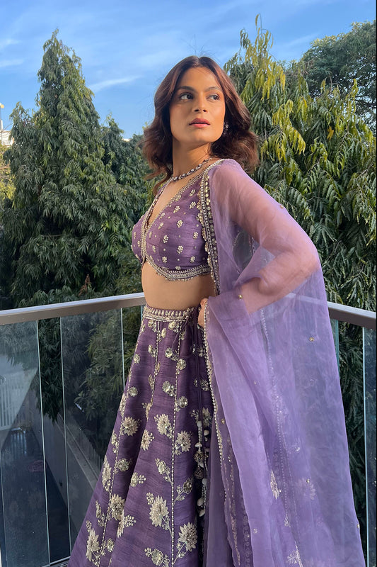 Srishti Dixit In Lavender Silk Embroidered Lehenga Set