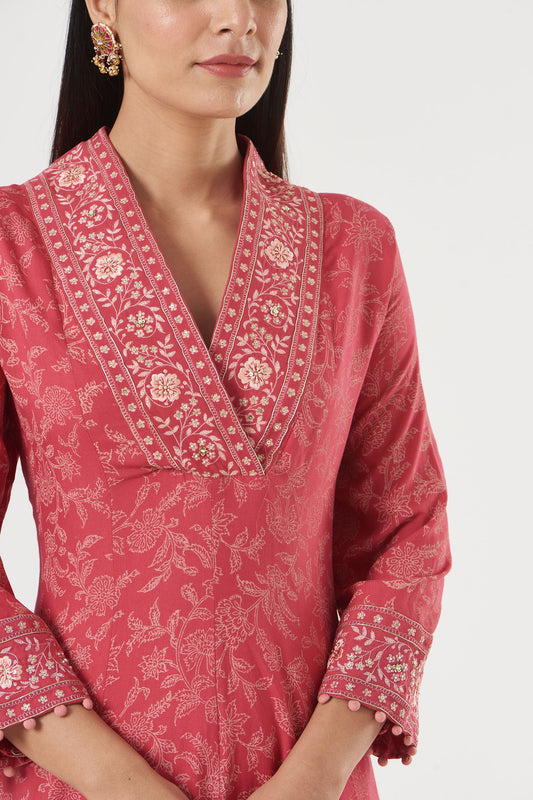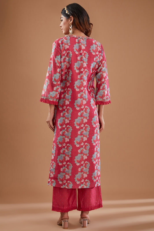 Fuchsia Georgette Embroidered Flared Kurta Set