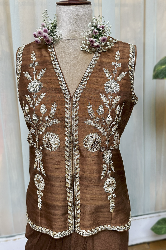 Cocoa Brown Silk Embroidered High Slit Kurta Set