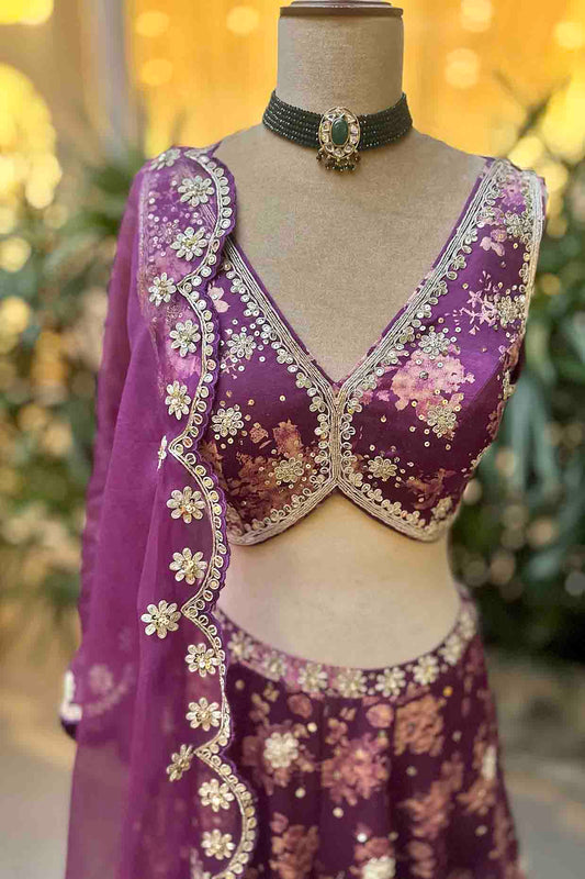 Cherry Silk Printed & Embroidered Concept Lehenga Set