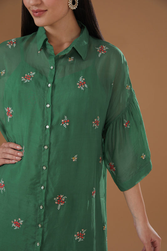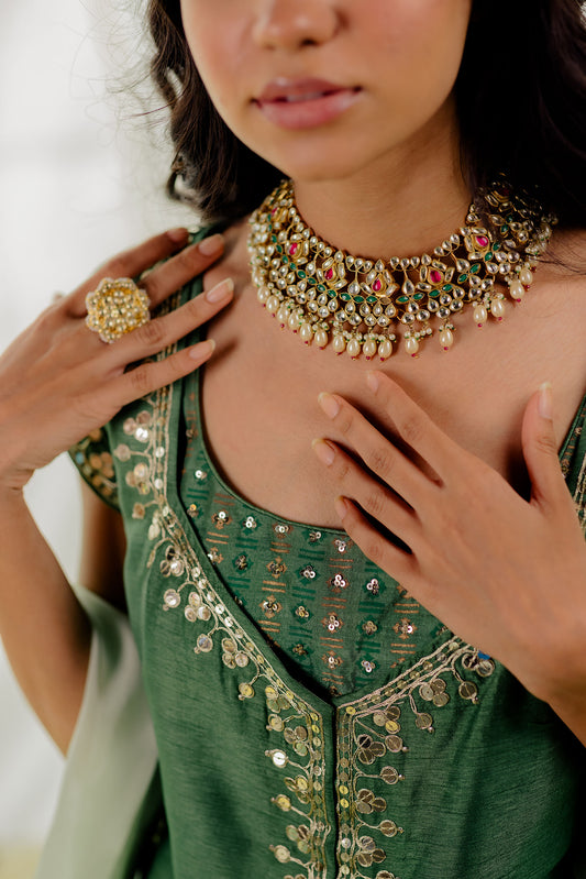 Green Silk Hand Embroidered Kalidaar Lehenga Set