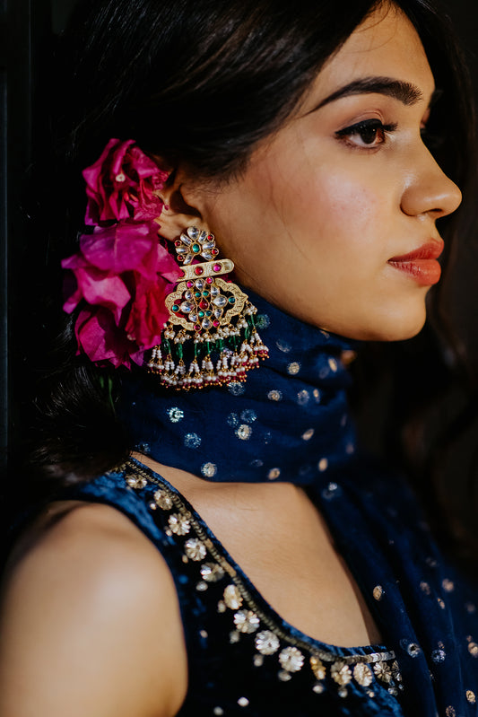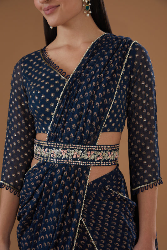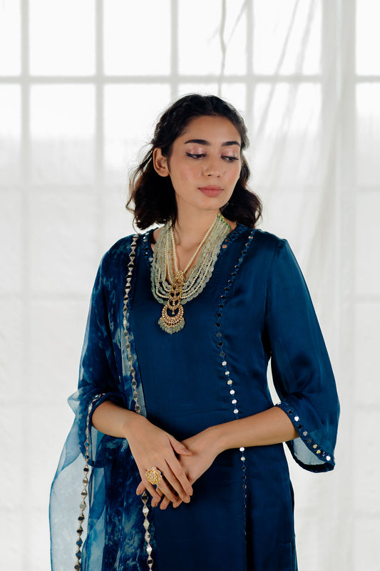 Indigo Printed & Embroidered Chiffon Kurta Set