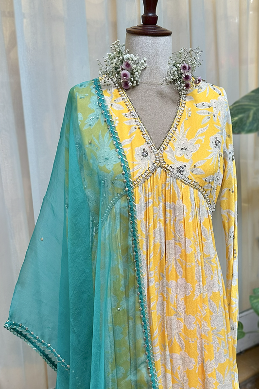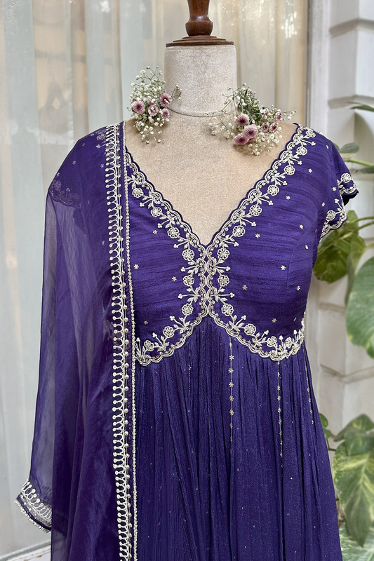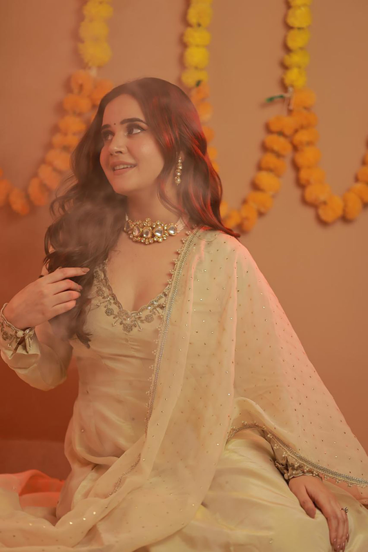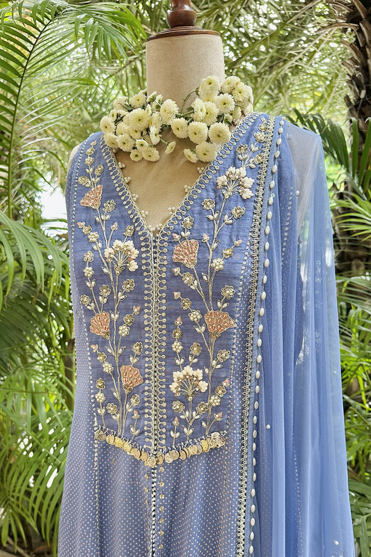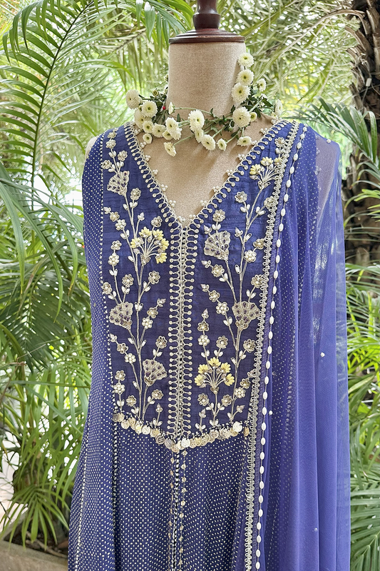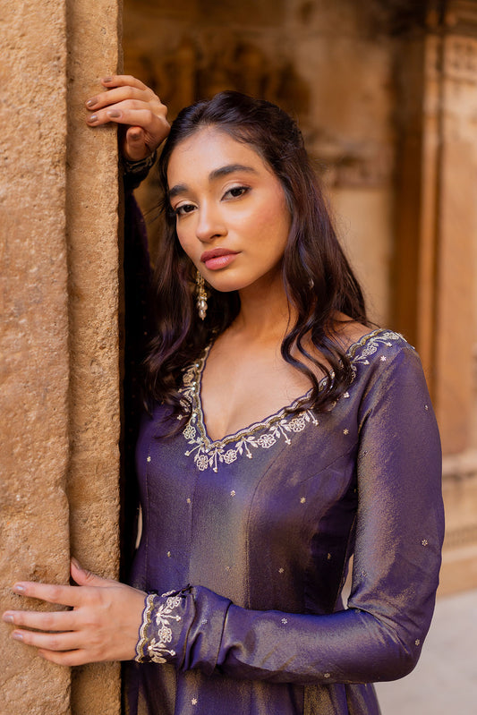 Shiv Shakti In Ecru Tissue Embroidered Anarkali Set