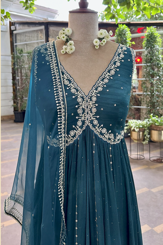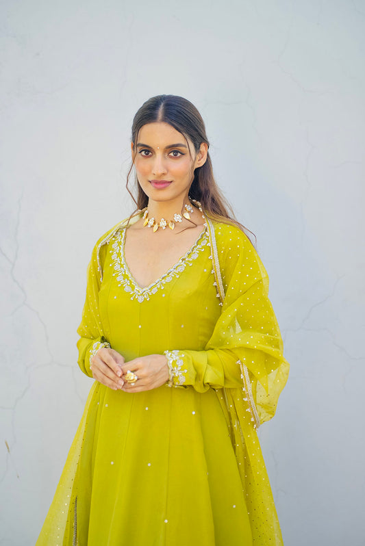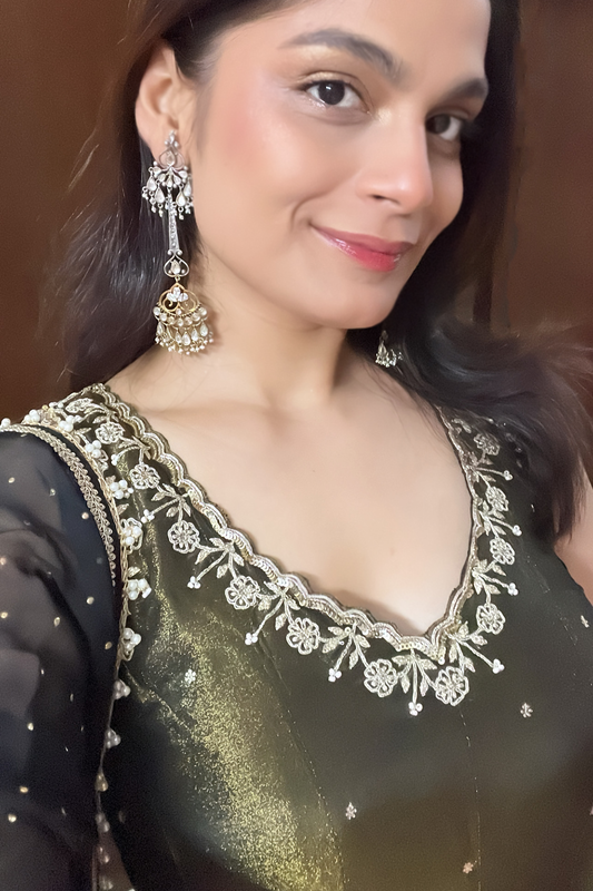 Srishti Dixit In Black Olive Tissue Embroidered Anarkali Set