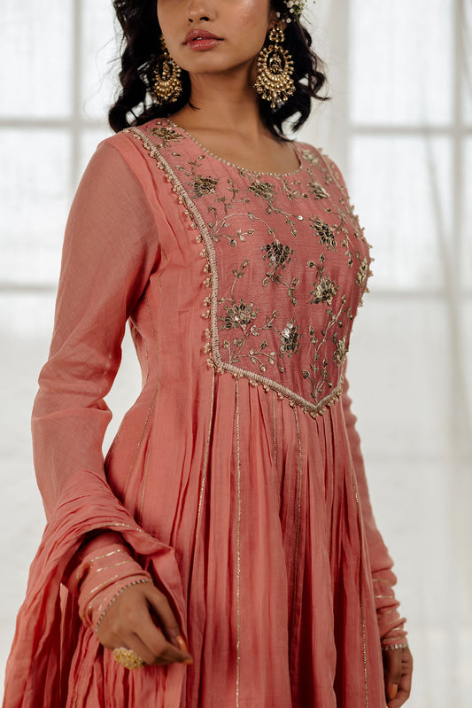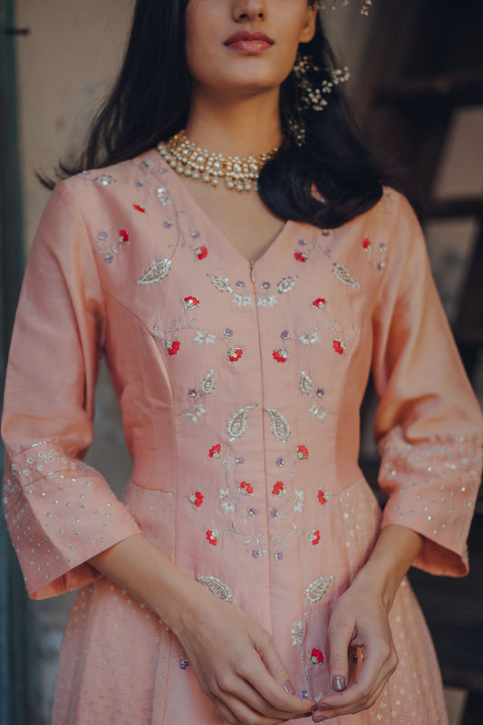 Pale Pink Paisley Embroidered Anarkali Set