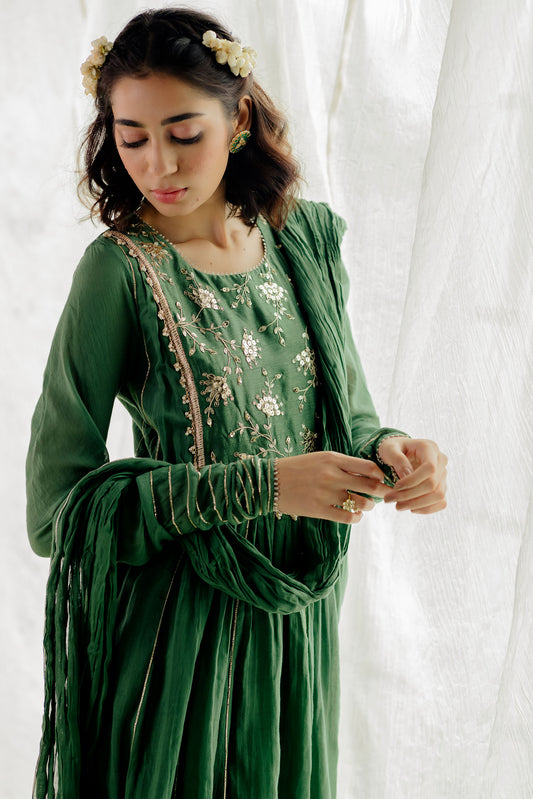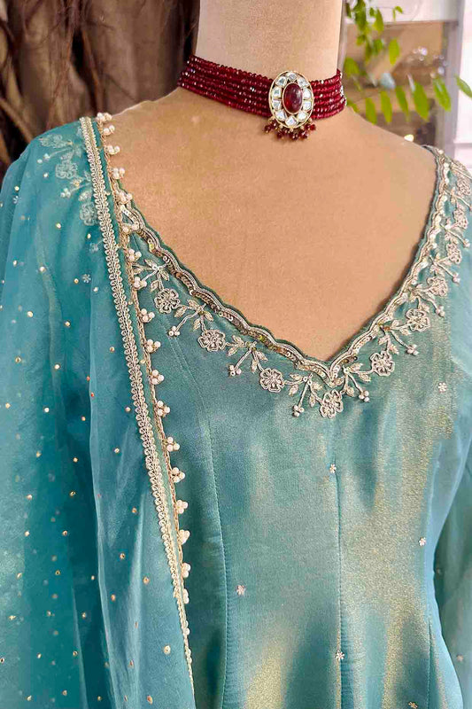 Jade Tissue Embroidered Anarkali Set