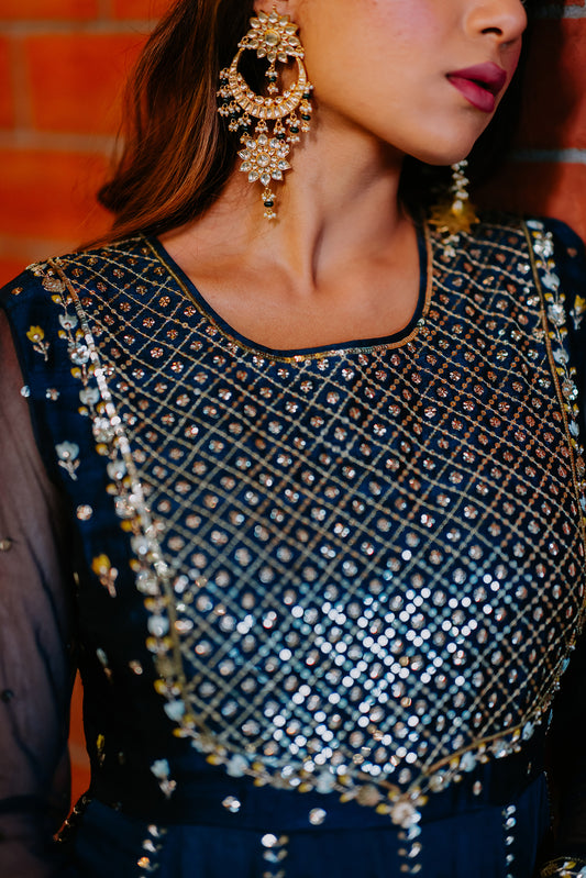 Indigo Kalidaar Embroidered Anarkali Set